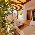 A House With A Tropical Garden Villa önellátáshoz hűtőt, sütőt és üvegárut biztosít a kültéri étkezőhelyen. A vendégek vacsorázhatnak az ingatlantól csak 7 percnyi sétára található Pizzeria & Grill Caprichosa vendégszeretetét élvezve. A 2 fürdőszobás villa továbbá néhány pillanatra van a Telefonica buszmegállótól. A Costa Adeje városi szállás büszkélkedik egy tengerre néző közös társalgóval.